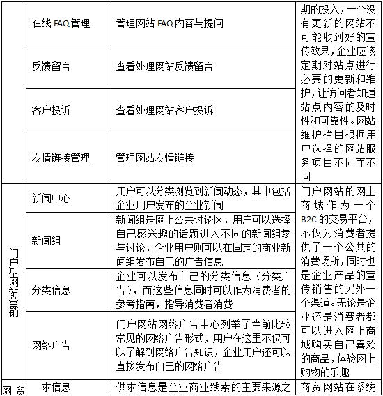 (2)企業網(wang)站管(guan)(guan)(guan)理與營(ying)銷:模塊什么(me)時(shi)候需(xu)要維護?新聞管(guan)(guan)(guan)理有何用(yong)處?如何管(guan)(guan)(guan)理網(wang)站會員?FAQ對網(wang)站有什么(me)幫助?是(shi)否(fou)留意反饋信息?是(shi)否(fou)解決顧客(ke)投訴?是(shi)否(fou)需(xu)要友(you)情鏈接(jie)?