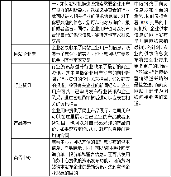 (3)商貿型(xing)網站:供(gong)求信息 企業名錄 行業咨(zi)詢 產品(pin)展示 商務中(zhong)心(xin)
