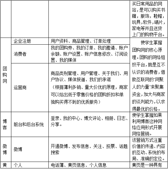 5、通(tong)(tong)過(guo)(guo)學生的(de)(de)分組,開展各(ge)式各(ge)樣的(de)(de)網絡(luo)(luo)營銷(xiao)活動的(de)(de)流程,體會不同層次的(de)(de)網絡(luo)(luo)營銷(xiao)給企業帶來的(de)(de)機遇。而(er)普通(tong)(tong)消(xiao)費者也可以通(tong)(tong)過(guo)(guo)進(jin)入(ru)網絡(luo)(luo)環境,訪問(wen)上述網站,使(shi)用個(ge)人郵(you)件服(fu)務等感(gan)受到企業網絡(luo)(luo)營銷(xiao)的(de)(de)影響力。學生通(tong)(tong)過(guo)(guo)親身(shen)操(cao)作軟件,可以體會到網絡(luo)(luo)營銷(xiao)與(yu)傳統(tong)營銷(xiao)的(de)(de)區別(bie)與(yu)聯系,了解各(ge)種網絡(luo)(luo)營銷(xiao)策(ce)略以及如何具(ju)體實施。